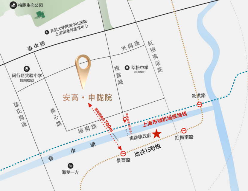 真正的奢侈,是让生活与城市同频。如果说双泳池是向内的品质承诺,那么梅陇的区位价值则是向外的发展红利。安高申陇院用属于自己的生活圈与,构建起闵行梅陇的纵深感。