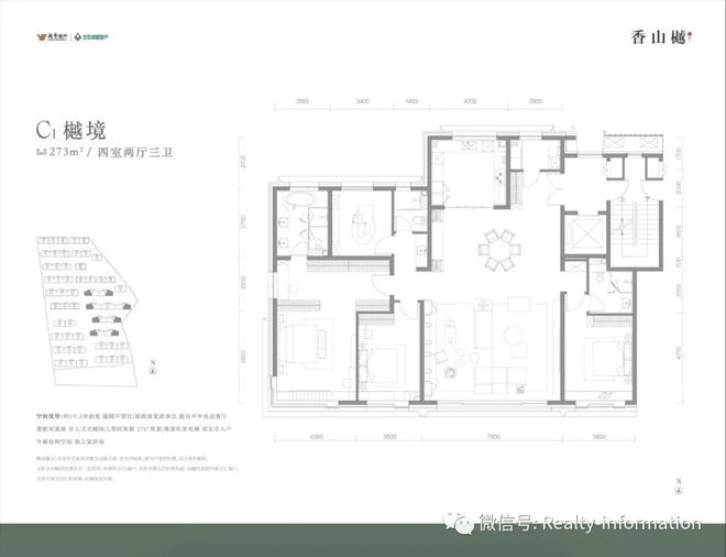 C户型272㎡:四室两厅三卫,3300-3500万