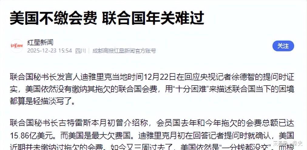 对于美国而言,这种恶意拖欠已经异化为一种极低成本的政治工具,既能在国内迎合孤立主义情绪,又能在国际舞台上将欠钱作为谈判桌上的筹码,用断供来倒逼联合国按照它的意愿行事。