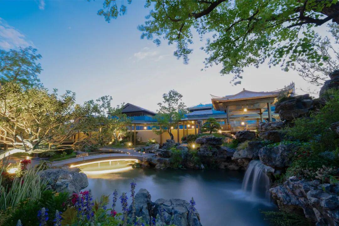 基于《营造法式》,柱径与柱高按1:10比例设计,门窗洞口采用黄金分割比例实现古典形制的标准化生产。同时,广纳珍稀花木,特选黑松、乌桕等名贵树种,处处皆是精工巧思。
