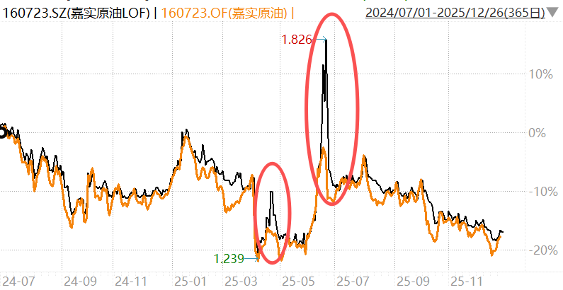 看历史数据,4月份、6月份,底层资产是商品的“嘉实原油LOF”也被打出过高溢价。