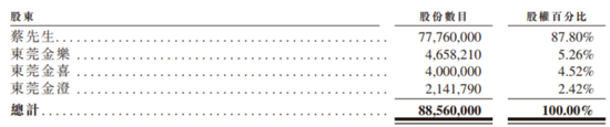 注:2025年5月至今公司股权架构,东莞金喜/金澄/金乐均由蔡建淳实控)