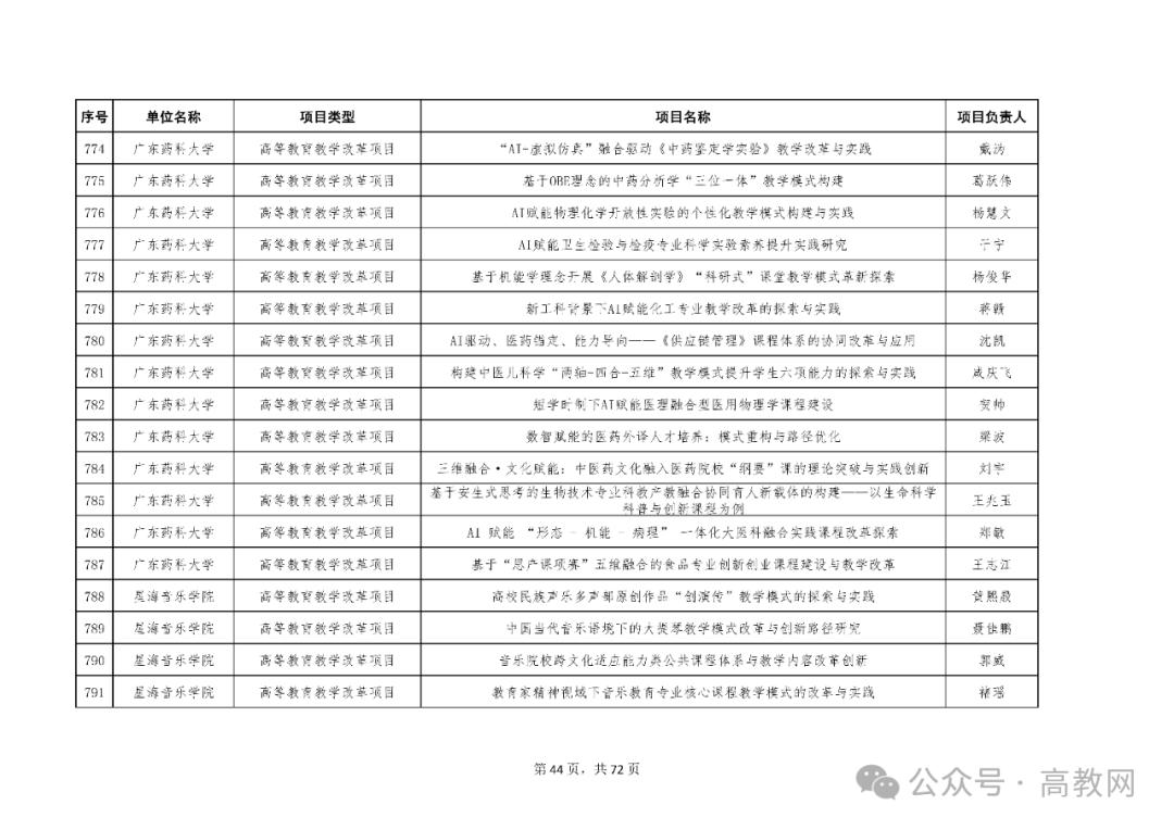 依据《广东省教育厅关于开展2025年度广东省本科高校教学质量与教学改革工程项目申报推荐工作的通知》安排,经学校推荐、省厅审核后,对1282个拟立项项目进行公示如下: