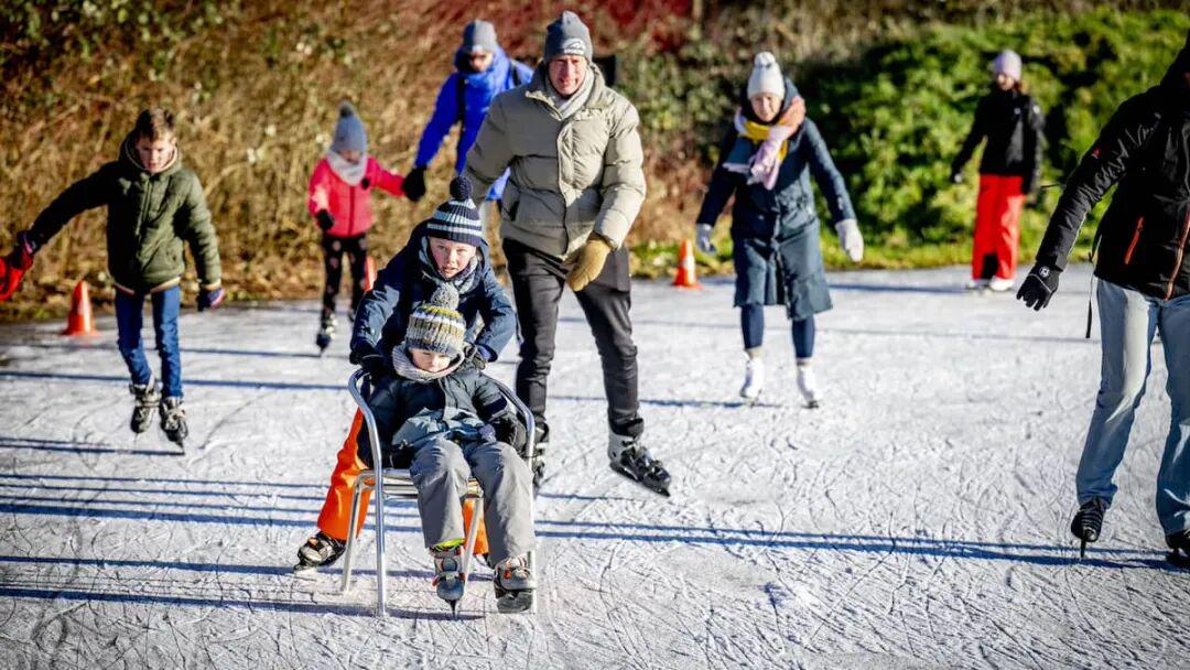 这并非荷兰唯一可以在天然冰道上滑冰的地方。昨晚的霜冻过后,荷兰的许多滑冰场都开放了。在弗里斯兰省的里普茨耶克斯特圩田(Ryptsjerksterpolder )等地,有人已经大胆地在真正的天然冰面上滑冰。