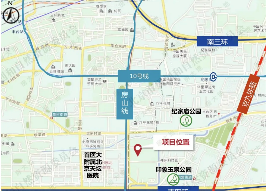 该地块位于丰台区南三环与南四环之间,属于玉泉营街道;天坛医院的东侧一路之隔。