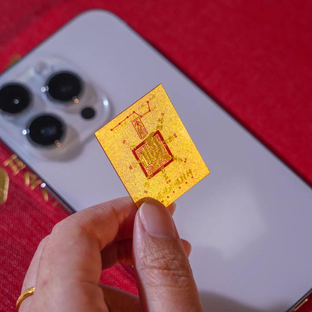 ▲足金手机贴,藏着“顺风顺水顺财神”的好彩头