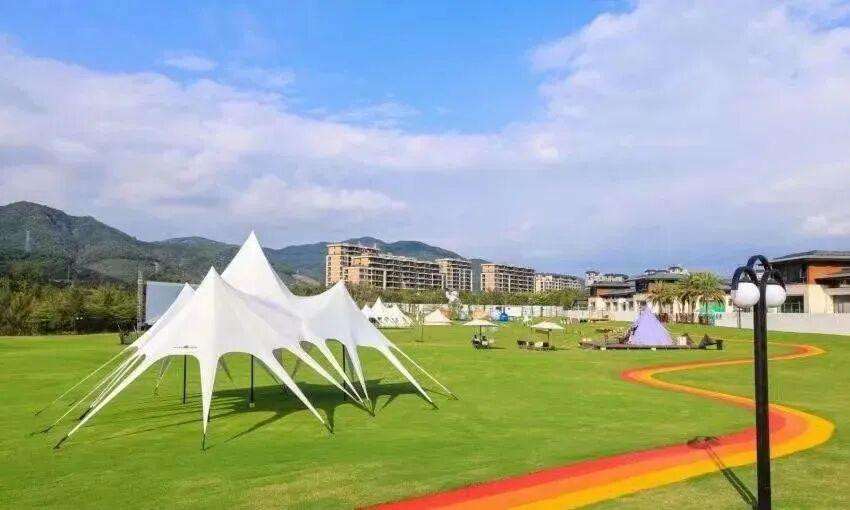 20000㎡草坪营地已于,融入ENCOFFEE咖啡吧、BBQ、野奢帐篷、飞盘体验、520m彩虹慢步道等丰富设施,打造三亚全新城市微度假目的地。