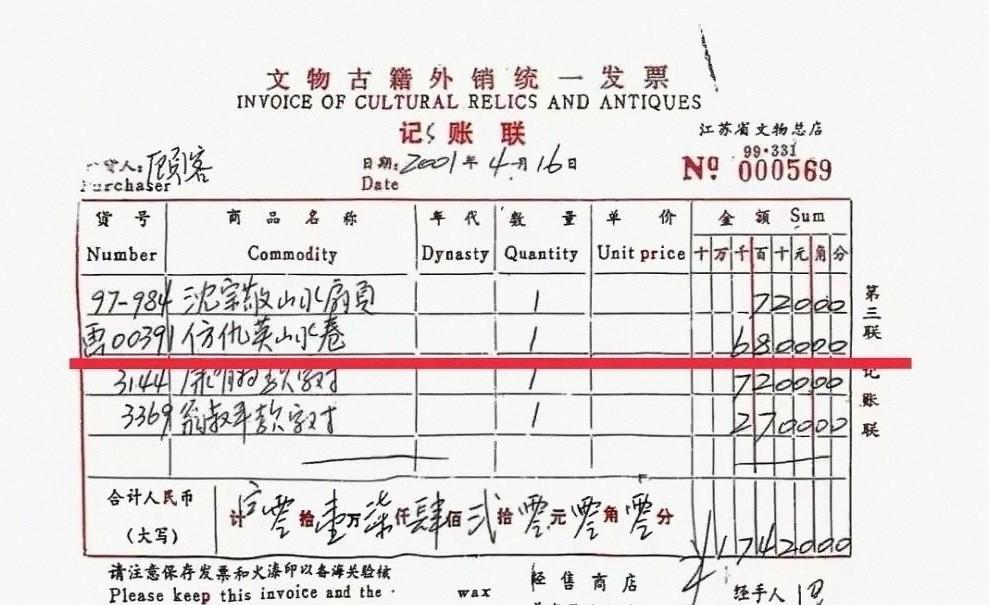 1997年,徐湖平的名字出现在划拨手续上,2001年,这幅《江南春》以“仿仇英山水卷”的名义,被以6800元卖出