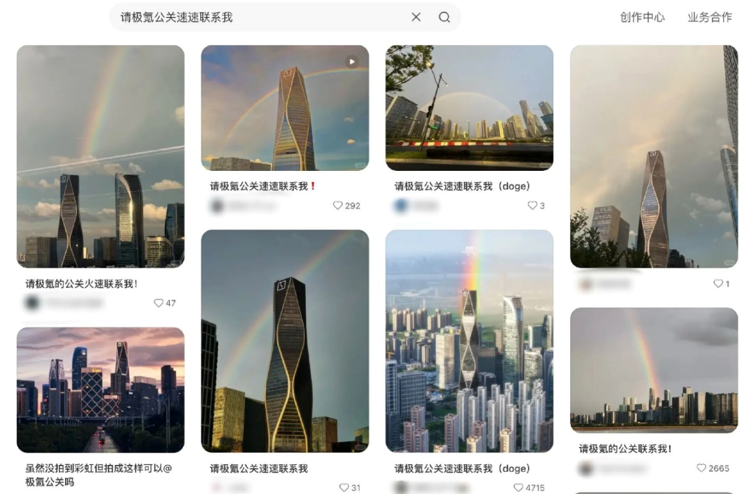 今年,一位网友偶然拍下极氪大厦上空的彩虹,喊话极氪公关——“请极氪公关速速联系我!”。按照常规操作,这种与产品无直接关联的内容,往往会被品牌方忽略——毕竟,这不属于标准的传播业务,也不在KPI考核范围内。