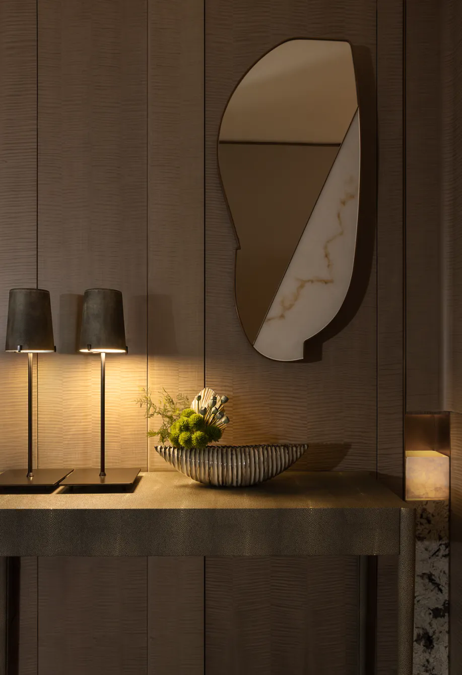 复刻和平饭店酒店式门庭,引入酒店式双线归家仪序,五进入户礼序与四重车仪之道,置身于海派隐奢的世界。高定酒店式落客区,尊奢入口,以国际顶奢酒店华尔道夫安曼式礼序营造,尽显尊贵风范。