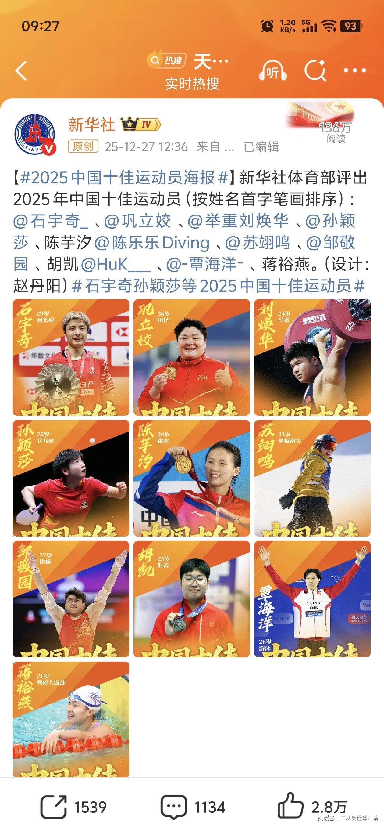 新华社的年度十佳运动员榜单,又成了体育迷热议的“爆款”,不出所料,每次公布,都伴随着“实至名归”的喝彩与“意难平”的疑问。