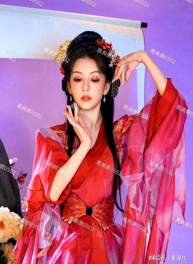 她的一张精修照中,红衣飘飘,宛如古代仙子,然而,在真实的活动现场,那种优雅的气质却显得有些捉襟见肘。