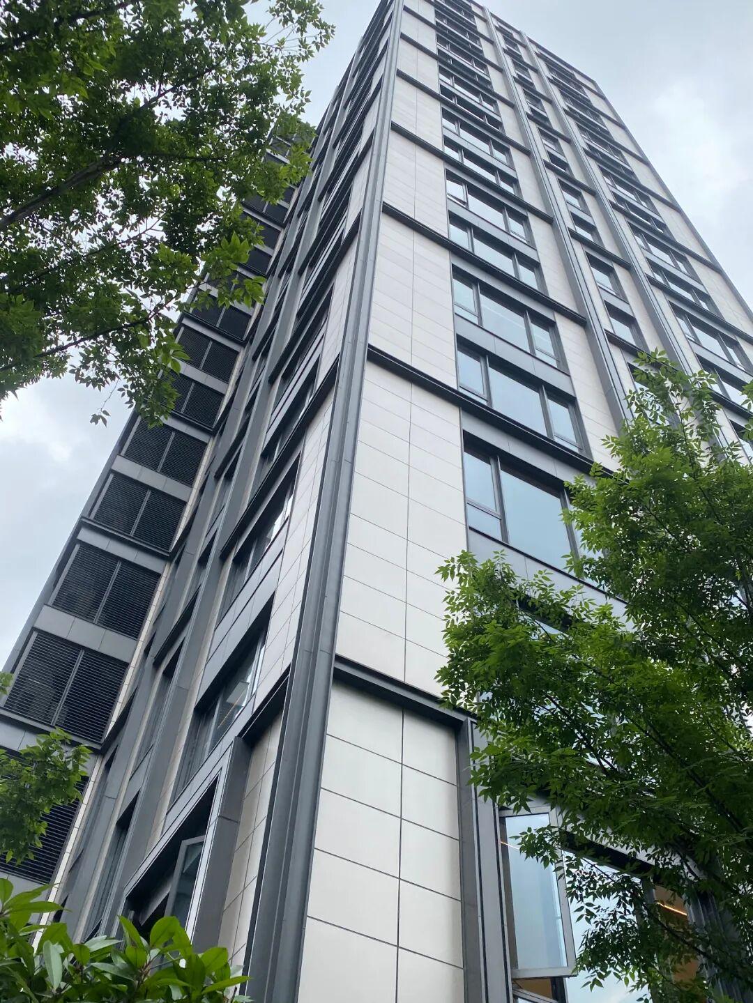 接着看到望庐的立面由一体板附着金属漆和外挂槽钢、铝合金线条组成;