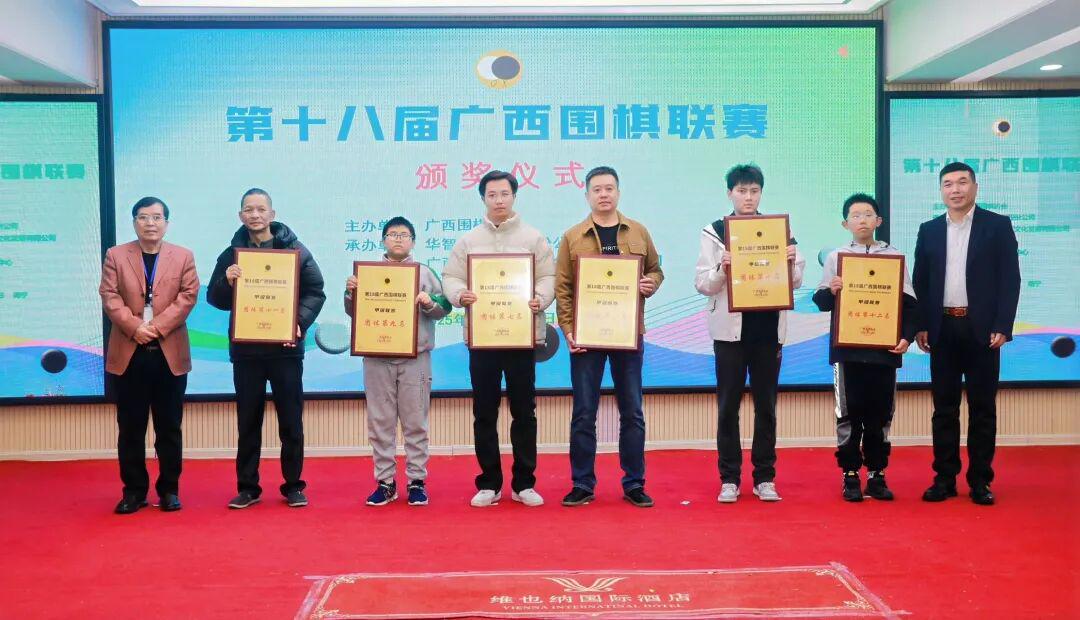 12月27-28日,第十八届广西围棋联赛在南宁维也纳国际酒店圆满落幕。最终, 由潘峰(四段)、邓启鸣(6段)、杨靖源(6段)组成的 桂林广陆数测队以5胜1负的战绩成功卫冕 甲级组冠军, 梧州市围棋协会一队与北海希望之星围棋队 则凭借出色发挥,分获亚军、季军。