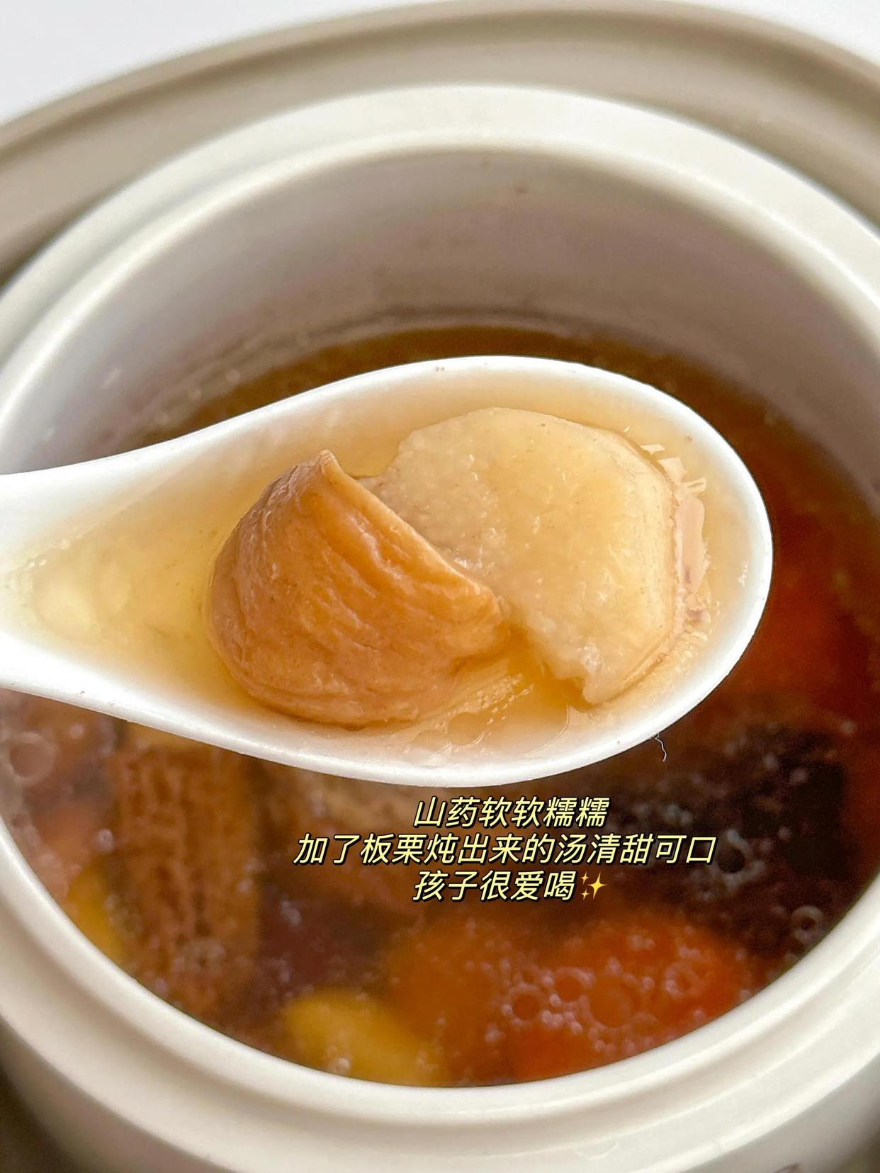 4.加入山药:1小时后,加入山药段,继续煲30分钟,直到山药软糯。