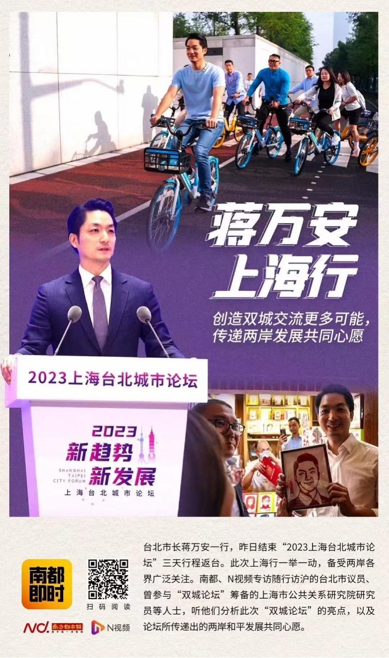 南都此前报道,2010年以来,上海与台北轮流举行“双城论坛”,共同探讨民生关切,分享城市管理经验,开展人文交流互动。曾参与过“双城论坛”筹备工作的上海市公共关系研究院研究员张伟栋向南都记者表示,“双城论坛”已经成为上海与台北两市之间携手合作、共创双赢的一个重要平台,对两市的发展具有非常重要的意义。