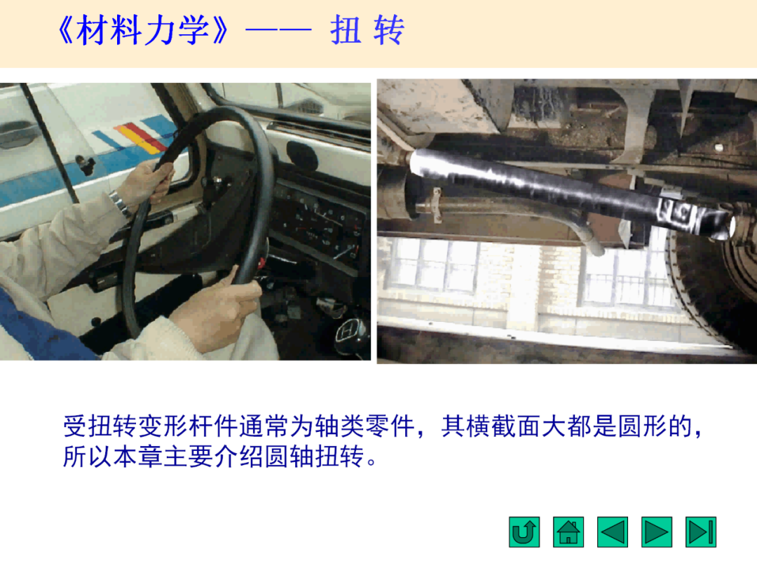 以扭转变形为主的直杆件通常称为“轴”,其中横截面为圆形的称为圆轴。横截面上由扭矩作用产生的内力称为扭矩,其大小可通过截面法求得,并常用扭矩图来表示沿杆轴线各横截面上扭矩的变化规律。