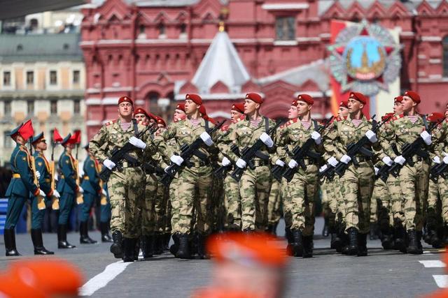 5月9日,俄罗斯军人在首都莫斯科参加纪念苏联伟大卫国战争胜利80周年阅兵式。新华社记者白雪骐摄