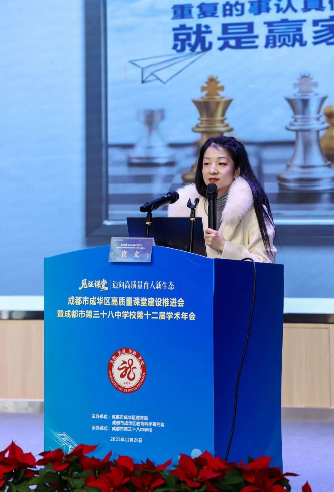 冬日暖阳,孕育希望。12月26日,成华区高质量课堂建设推进会暨成都市第三十八中学校第十二届学术年会在学术报告厅隆重举行。各级教育专家、教育同仁齐聚一堂,围绕“见证课堂:迈向高质量育人新生态”这一主题,通过开幕式、主题解读、专家讲座、工作部署及多学科课例展评等丰富环节,共探“学为中心”的课堂实践路径,为区域教育优质均衡发展注入新动能。
