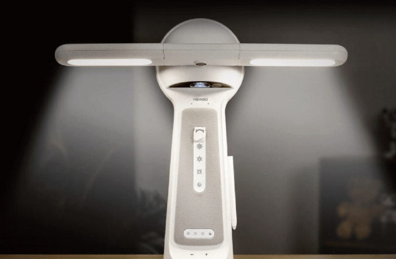 为营造整体均匀的光环境,宾果智慧光AI智能台灯采用双翼灯带设计,从两侧对桌面进行补光,进一步消除手部和书本下的阴影,减少了视觉范围内的明暗对比,创造了更有利于专注的明亮均匀桌面环境。
