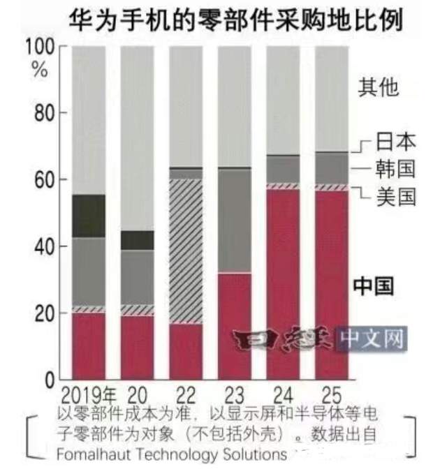 不过日本媒体不认可这个95%。他们认为2019年华为国产化率才20%左右,比国内数据低。到2025年,日媒觉得中国本土元件只占60%,剩下40%来自美国、韩国、日本等国家。这数据和国内说法差不少,到底谁对?
