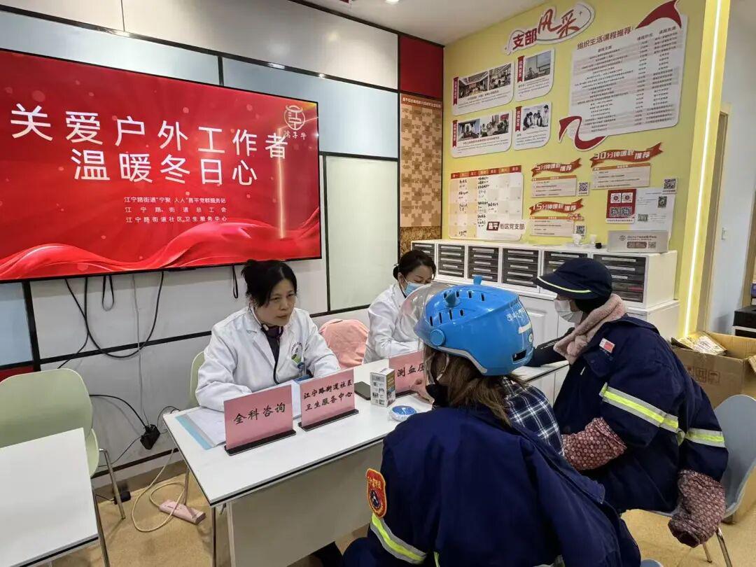 近日,江宁路街道社区卫生服务中心依托昌平党群服务站网格阵地,组织开展“关爱户外工作者,温暖冬日心”公益活动,将精准医疗服务和暖心关怀送到60余名户外工作者身边,在寒冷冬日里送上一份实实在在的健康关怀。