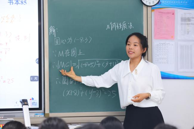 数学组教研活动由佛山市顺德区勒流职业技术学校高级讲师肖依和深圳市博伦职业技术学校讲师甘健玲主持。老师们现场观摩了两节公开课,分别是深圳市博伦职业技术学校王坤杰老师讲授的“余弦定理”(面向2024级首设计与制作专业)和靳竹青老师讲授的“圆的标准方程”(面向2024级艺术设计与制作专业职普融通班)。