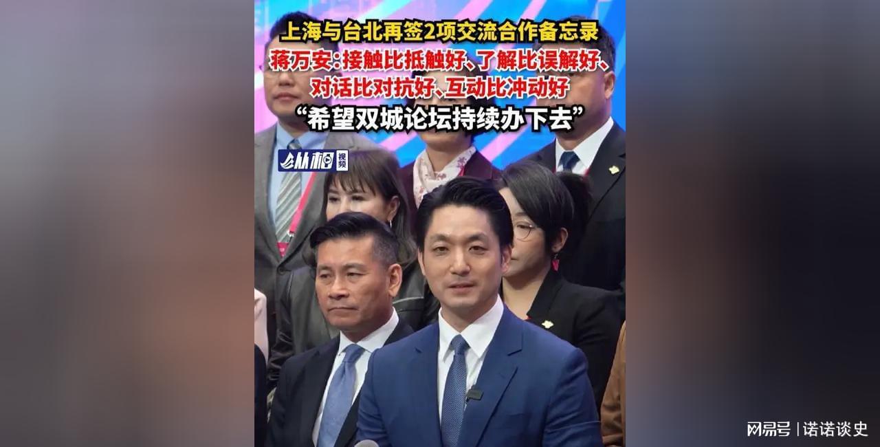论坛落幕时,蒋万安接受专访的表述引发两岸民众共鸣。他直言此次赴沪最直观感受是“近”与“快”,台北飞上海时长堪比台北至高雄高铁行程。