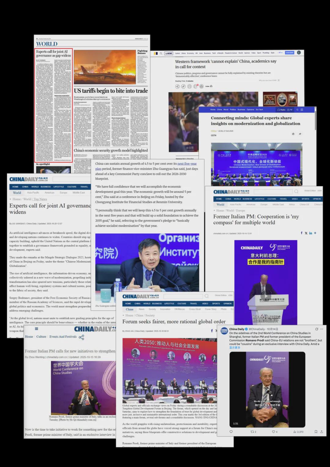 、、、、CGTN、凤凰卫视、路透社、塔斯社、南华早报、《日本每日新闻》、韩国《中央日报》等近50家中外媒体报道论坛,累计发布120余篇相关稿件,在全球范围内展现巨大议题影响力,近万条中外网友评论均表示,这种直面分歧、寻求共识的对话模式,让他们对构建人类命运共同体有了更真切的期待。全球超1亿人次浏览相关内容。