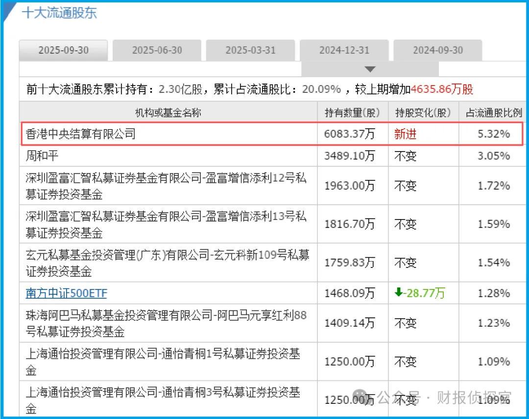 第一个是人证:香港中央结算有限公司这位“北向资金”代表,悄然出现在前十大股东名单中。