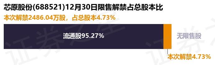 证券之星消息,根据市场公开信息整理,芯原股份(688521)于12月30日将有2486.04万股限售股份解禁,为公司定向增发机构配售股份,占公司总股本4.73%。(本次数据根据历史公告整理得出,实际情况以上市公司最新公告为准)最近一年内,该股累计解禁258.19万股,占总股本的0.49%。本次解禁后,公司已无限售股份。具体如下图所示: