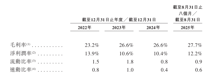 于2022年度、2023年度、2024年度、2025年截至8月31日止八个月,公司分别录得年内/期内利润约1.14亿元、4900.1万元、5940.5万元、5624.1万元。
