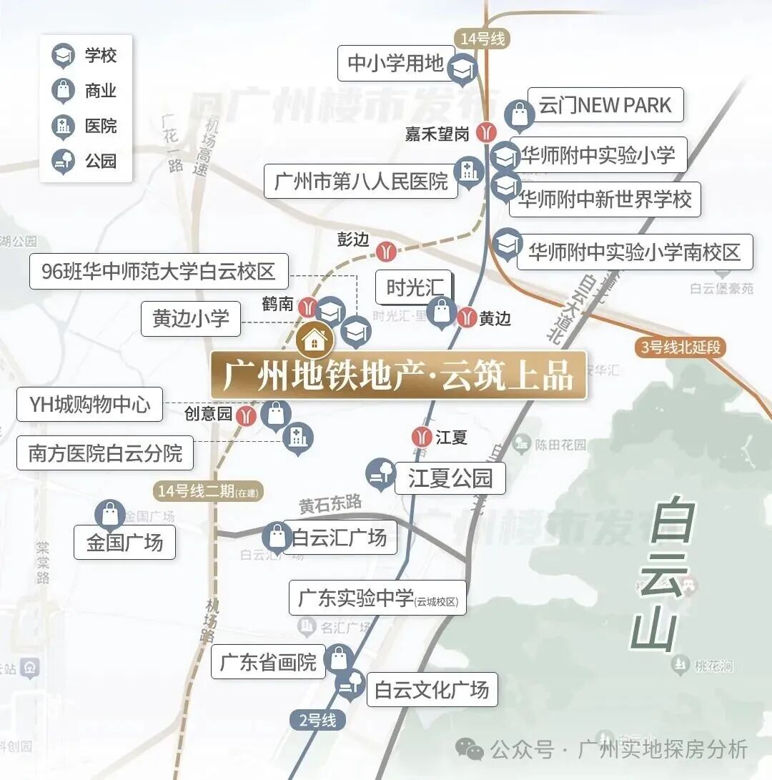 3、商业与医疗配套完善:周边1公里内有保利时光汇、云门new park等大型商场,5公里内可达凯德广场、白云万达等。周边有广州市第八人民医院、南方医科大学南方医院白云分院等三甲医院,医疗资源丰富。