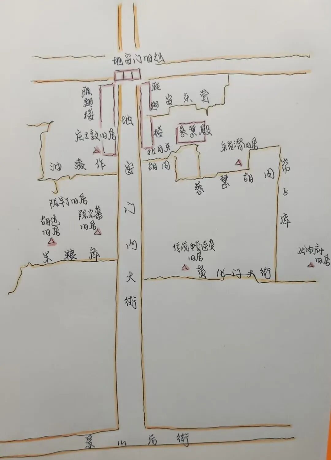 落脚于此的朱光潜,曾写过《慈慧殿3号》与《后门大街》。在《后门大街》一文中,朱光潜夹叙夹议地写道:“北平的精华可以说全在天安门大街。它的宽大、整洁、辉煌,立刻就会使你觉到它象征一个古国古城的伟大雍容的气象。地安门(后门)大街恰好给它做一个强烈的反衬。它偏僻,阴暗,湫隘,局促,没有一点可以叫一个初来的游人留恋。”尽管这样说,朱光潜却没有立即搬走。这里距离他工作的北大红楼实在太近了。每天从地安门内大街出发,沿着景山东街经沙滩后街,终点是红楼,步行顶多也就20分钟。课余时间,朱光潜常在地安门一带闲逛。