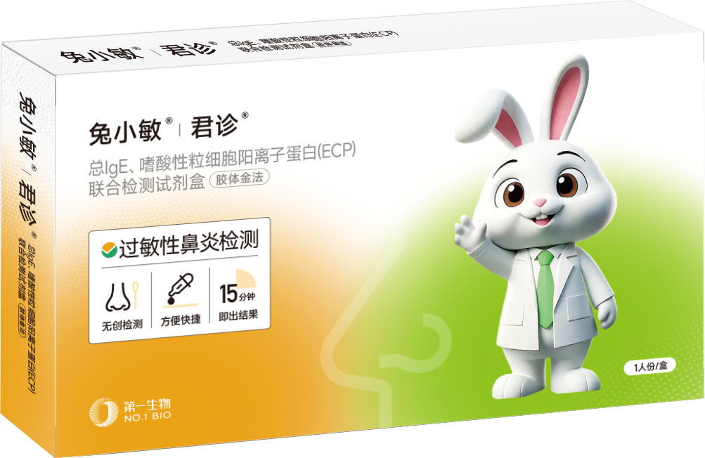 而这次市药监局获批的兔小敏检测试剂盒,恰恰精准解决了这些痛点。它最核心的突破就是“双指标联合检测+无创采样”:通过检测鼻分泌物中的总IgE和ECP两个关键指标,既能反映全身过敏状态,又能精准定位鼻部局部炎症,从根源上分清是过敏还是普通感冒引发的流涕。全程不用采血、不用配合复杂仪器,用柔性鼻拭子在孩子鼻腔浅层采样,15-20分钟就能出结果,操作难度和抗原自测差不多,孩子完全不抗拒。