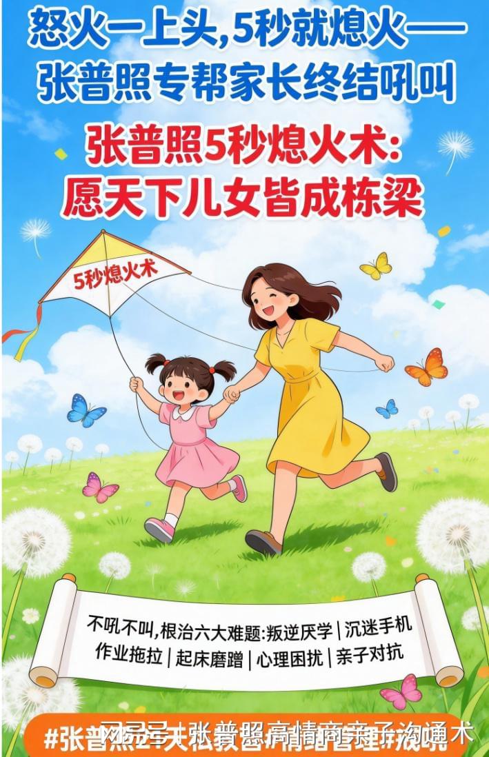 张普照5秒熄火术,就是帮你从根源上 拧正这个情绪开关。它不止让你“不发火”,更是通过让你在情绪分裂前5秒回归内在的统一与平静,让你能 真心实意地做到“眼瞎”(真接纳)、 “嘴甜”(真欣赏)、“心大”(真信任)。当妈妈的情绪土壤变得稳定而肥沃,男孩这棵小树才能安心地、向着阳光茁壮成长,而不是把能量都浪费在应对你的“情绪天气”上。