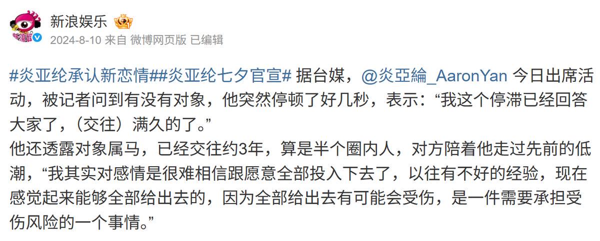 可以预见的是,在曝出自己的恋爱经历后,炎亚纶大概率和路人缘无缘了。