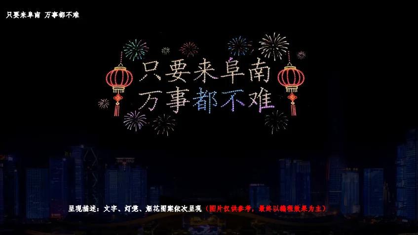 元旦佳节将至,阜南县以科技赋能文旅,在陶子河公园上演1500架无人机集群表演,用璀璨光影勾勒城市底蕴、传递新年祝福,为全县人民献上一场震撼的视觉盛宴,营造喜庆祥和的节日氛围,丰富群众精神文化生活。