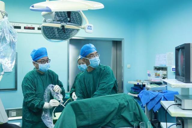 考虑到结石大、硬度高、肾积水少,同时患者高龄,手术难度大、出血感染风险高的情况,团队在完善相关检查后组织多学科会诊,最终决定为其实施经皮肾镜左肾鹿角形结石碎石取石术。这项微创手术只需在腰部开一个5mm的“小孔”,联合输尿管软镜将结石击碎清除,具有创伤小、出血少、恢复快、清石率高等优势。