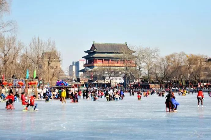 下午三点,我们来到了什刹海。什刹海是北京最著名的历史文化保护区之一,这里保存了大量的明清时期的文化古迹和传统民居。冬季的什刹海变成了一个巨大的冰场,吸引了大量的游客前来滑冰。