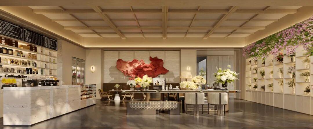 也只有这些质感如圭璧的顶级石材、精度至毫米的定制铝板,更能适配中庭内栽种的南方珍稀水杉;搭配金凤梧桐为骨,勾勒“一带六重八景”的东方主题画境园林。
