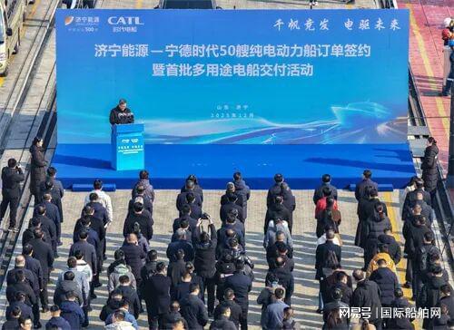 12月29日上午,济宁能源集团与宁德时代电船科技有限公司举行50艘纯电动力船订单签约暨首批5艘多用途电船交付活动。