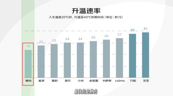 在加热速度测试中,林内展现出了惊人实力。将水从常温加热到舒适的沐浴温度(40℃),林内仅需19秒,在十款高端机型中排名第一,比部分品牌快了近一半时间。这种快速加热能力,不仅解决了洗澡前“罚站”等热水的核心痛点,更能显著减少冷水浪费。
