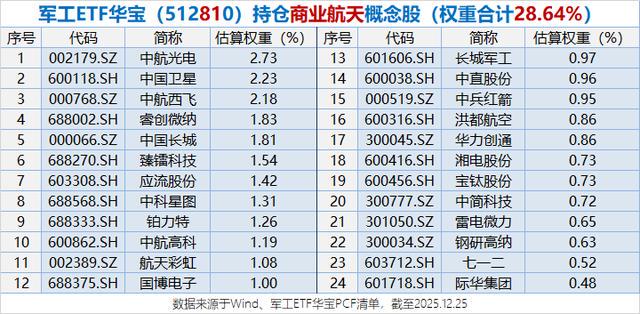 12月30日午后,商业航天主题板块突发跳水,拖累军工ETF华宝(512810)走低翻绿。早盘512810一度冲高1.4%再创逾3年新高。