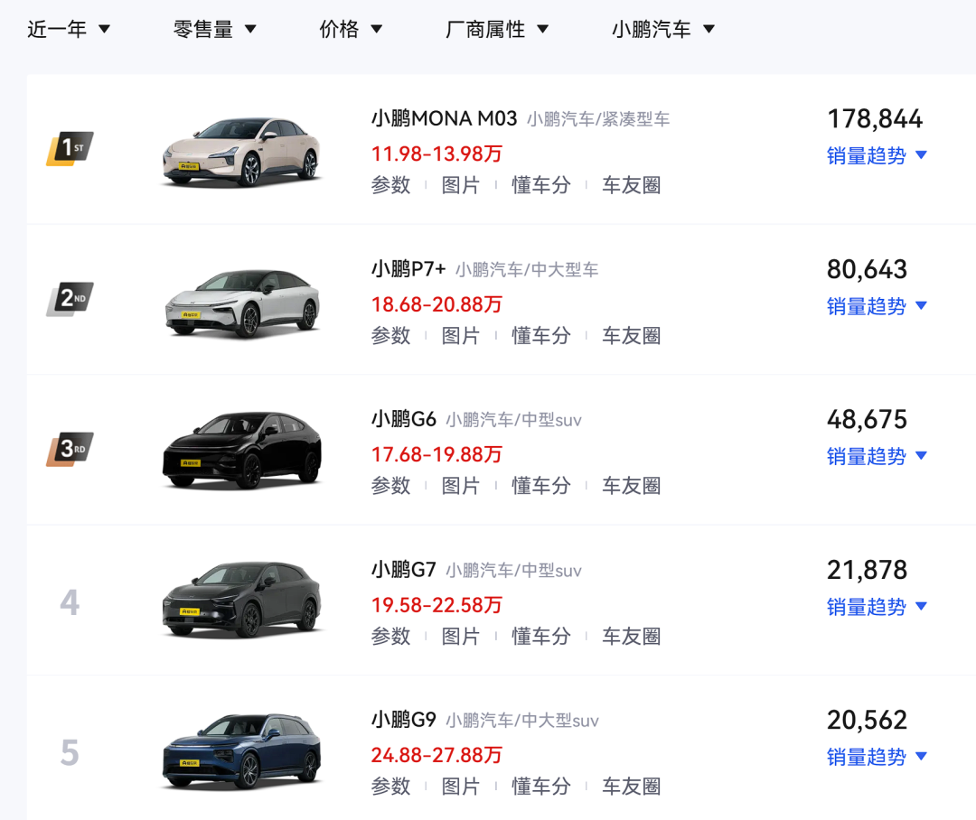 小鹏MONA M03在销量上拯救了小鹏,但也确实将小鹏汽车的品牌形象“拉低”了,而且小鹏已经很长时间都是将MONA M03作为主力车型销售,其他车型的销量反而没有那么好,因此小鹏需要一款价格相对较高的爆款车型来“拯救”品牌形象,这款车型或许是小鹏P7+增程版,或许是小鹏G7增程版,答案可能就在“增程版”中。