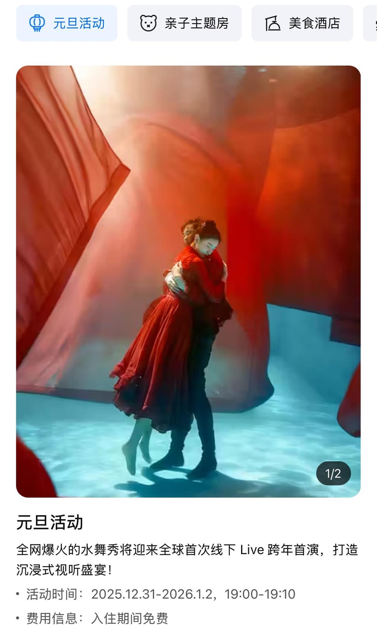 三亚亚特兰蒂斯酒店的节日氛围也十分浓厚。12月30日一个房型的房价为2688元,12月31日涨至6688元,元旦当日为4988元,假期后降至2000元左右。酒店元旦期间将上演火舞秀,泳池边餐厅设置跨年零点倒计时环节,并有乐队现场驻唱。客服表示,餐厅为室外开放区域,即便不消费也可在一旁观看表演,让更多游客共享节日喜悦。