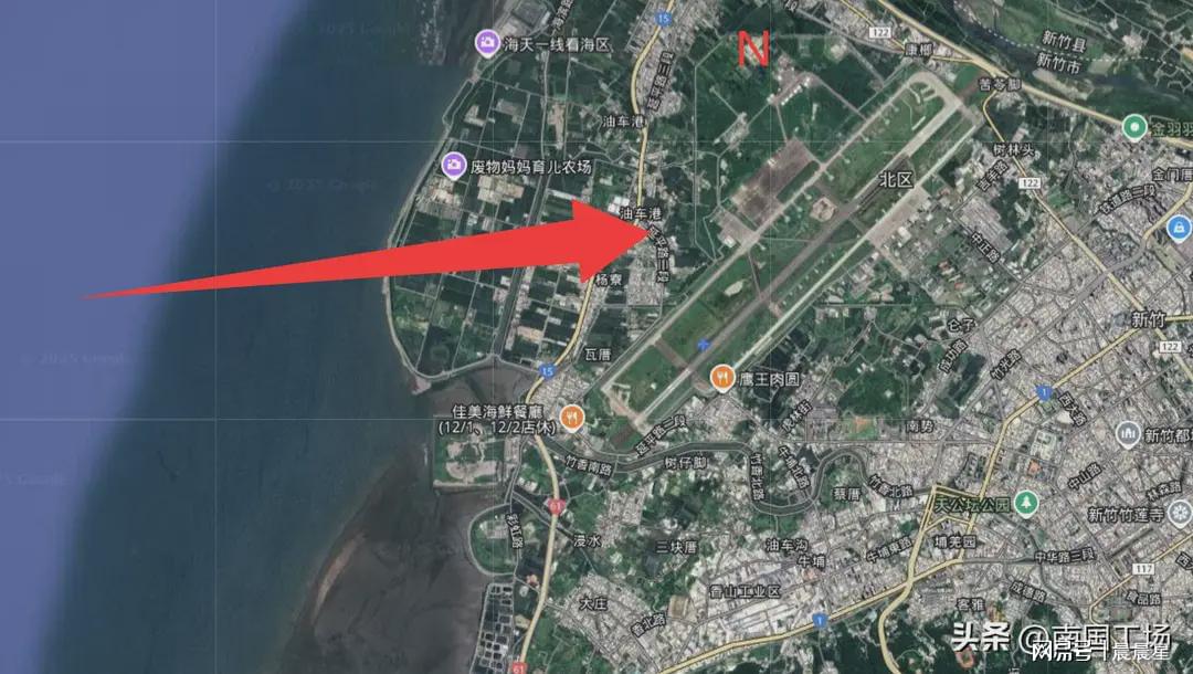 解放军无人机从剪头方向,拍摄的新竹空军基地