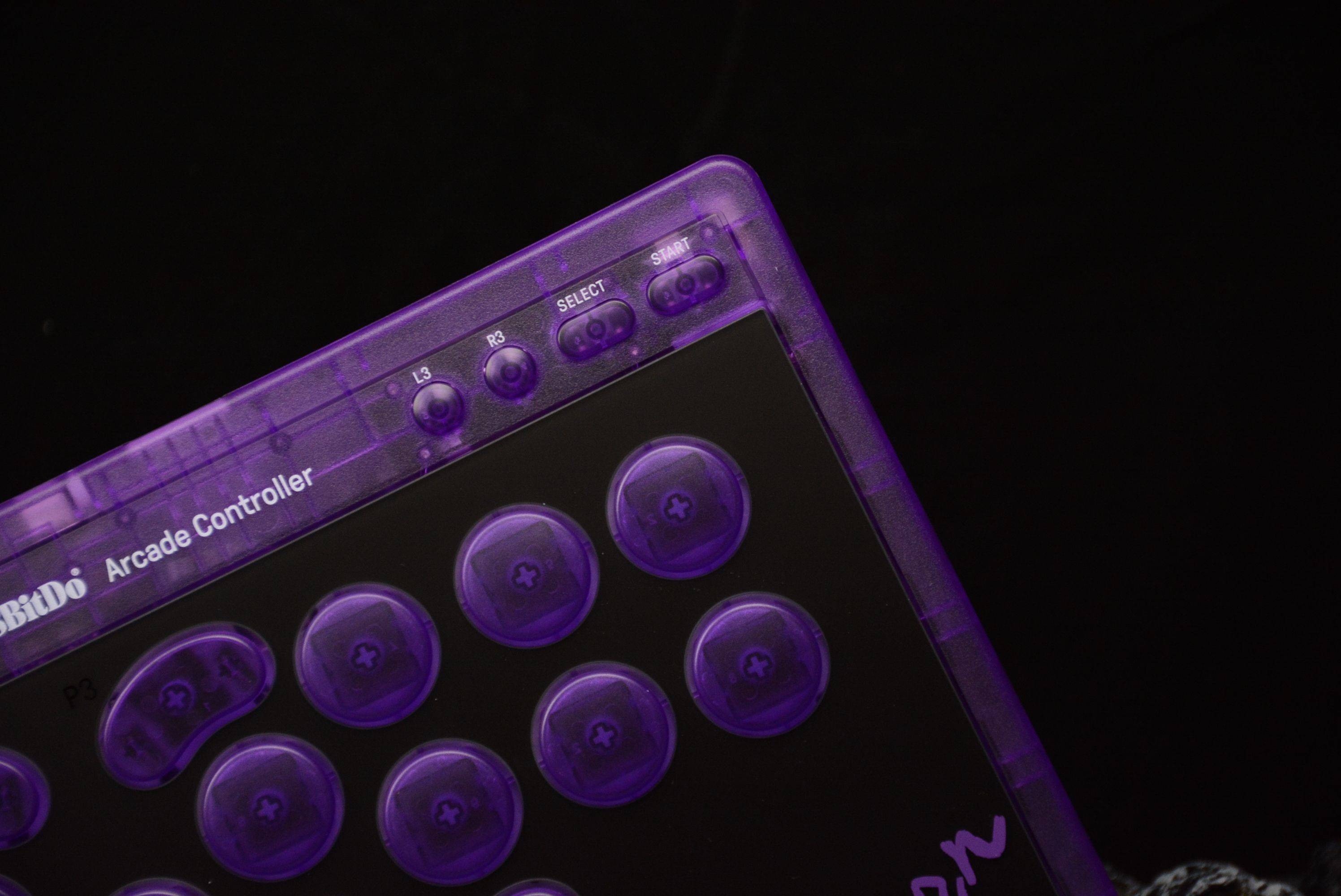 我入手的这款,是八位堂天刃星街机控制器-紫透版,外观非常酷炫。