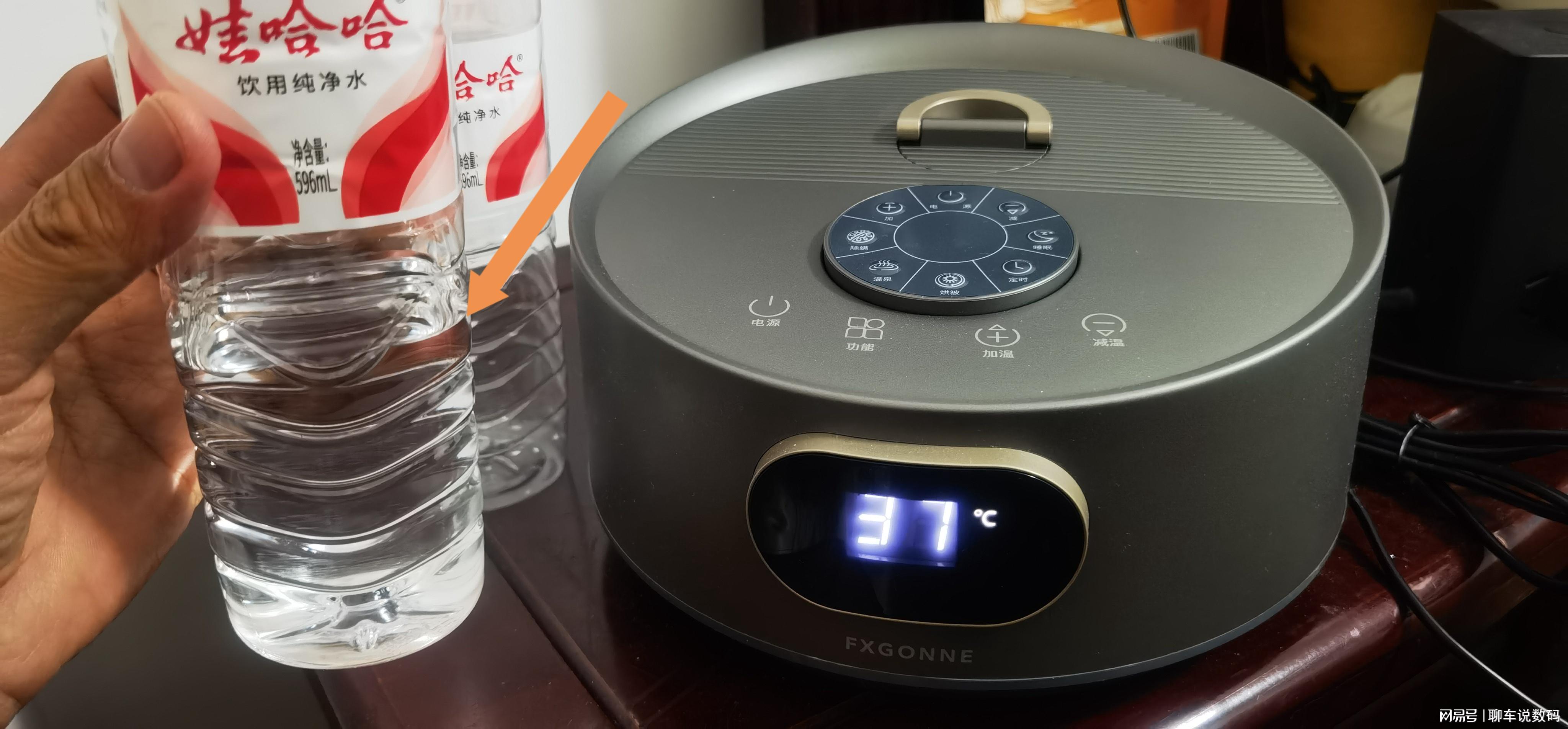 官方宣传600毫升超大水箱,可并不是代表只需要加那么一点水就够了。如上图,管道里也有空间的,加入600毫升的纯净水,两瓶只剩下底下一点。大水箱,又是在封闭的状态下运行,其实无需频繁加水,就可以舒舒服服的过冬。