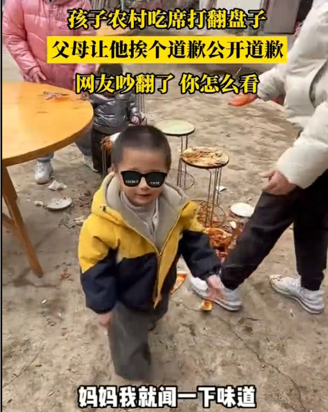 112月29日,四川雅安一场乡村宴席上,一名七八岁的孩童因好奇凑近闻菜香,不慎碰翻了面前的菜盘。孩子当场慌张解释自己并非有意,眼眶泛红着向妈妈认错,可父母却坚持要他向在场所有人致歉。